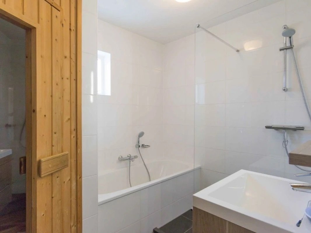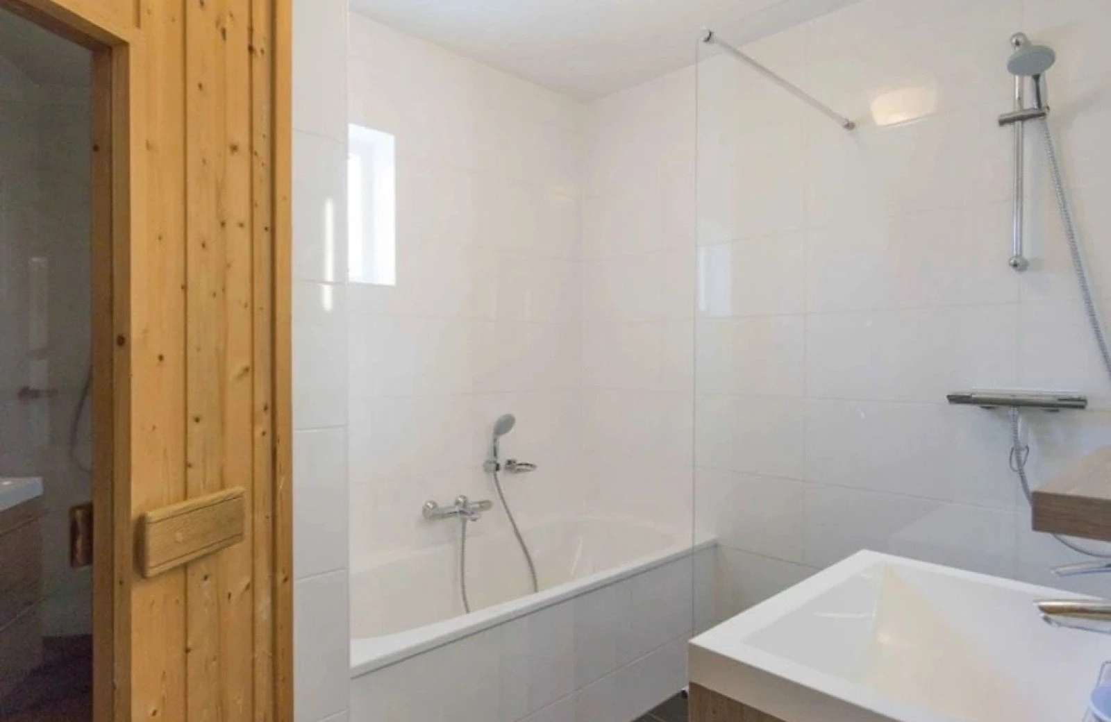 Inside, you will find a bright, maritime-themed living room with a fireplace, a modern kitchen equipped with a dishwasher, oven/microwave, and three coffee machines, and a bathroom with a sauna. The bedrooms are tastefully decorated, one of which has a balcony with panoramic views.