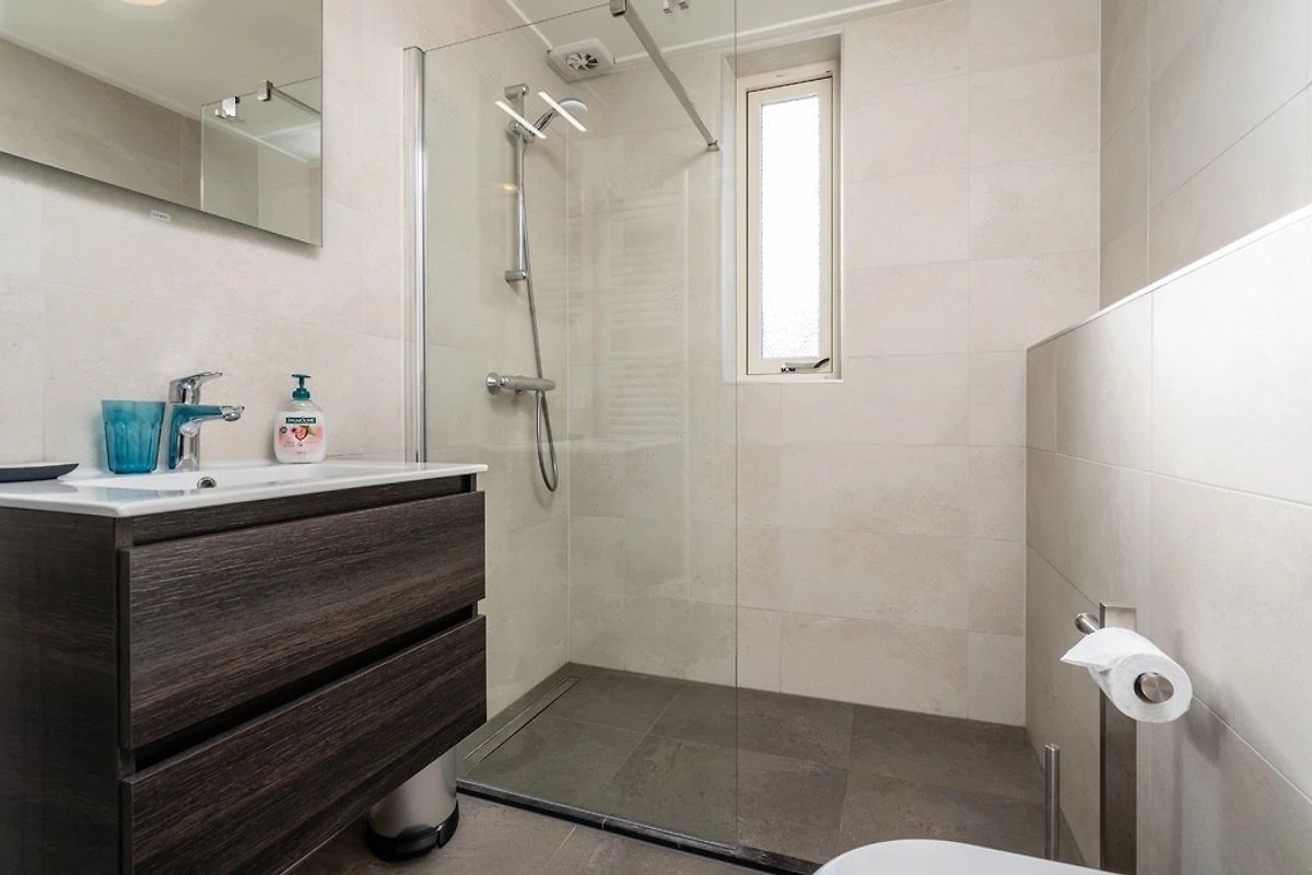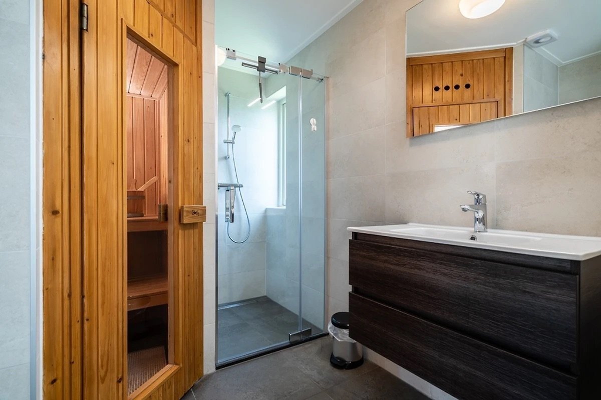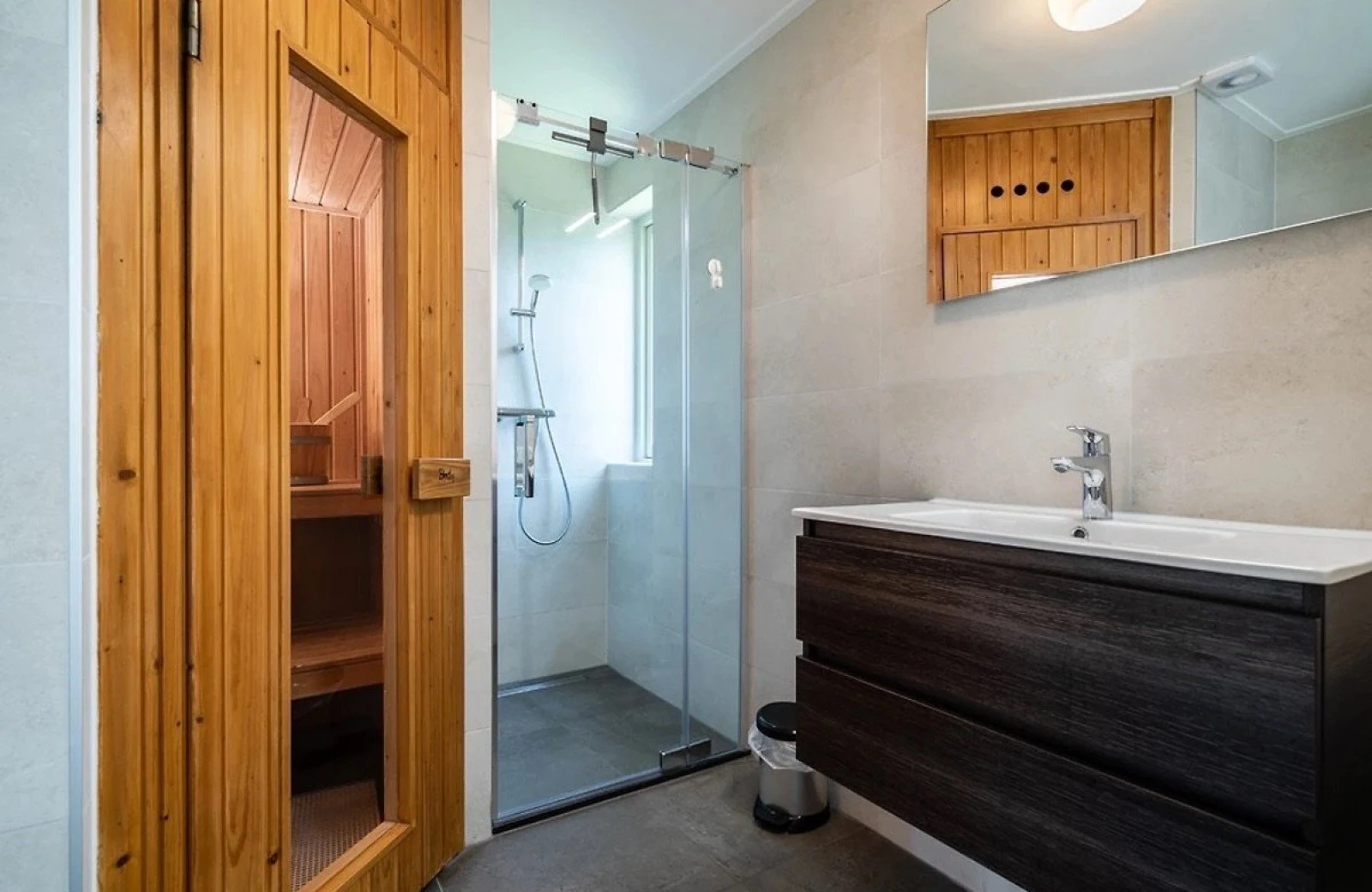 Inside, you will find a modern Bruynzeel kitchen with new pots and pans and tableware, two completely new bathrooms with toilet and sauna, and a cozy fireplace in the spacious living room. There is also a washing machine and dryer to make your stay even more comfortable.